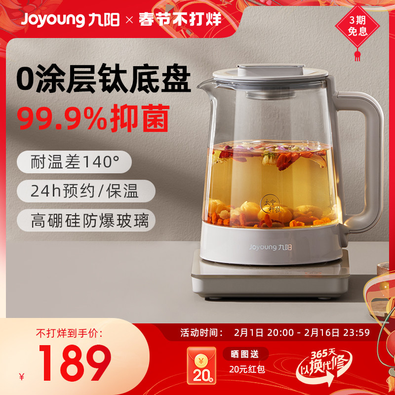 券 210元销量100九阳纯钛养生壶家用多功能办公室小型全自动烧水壶花茶壶煮茶器