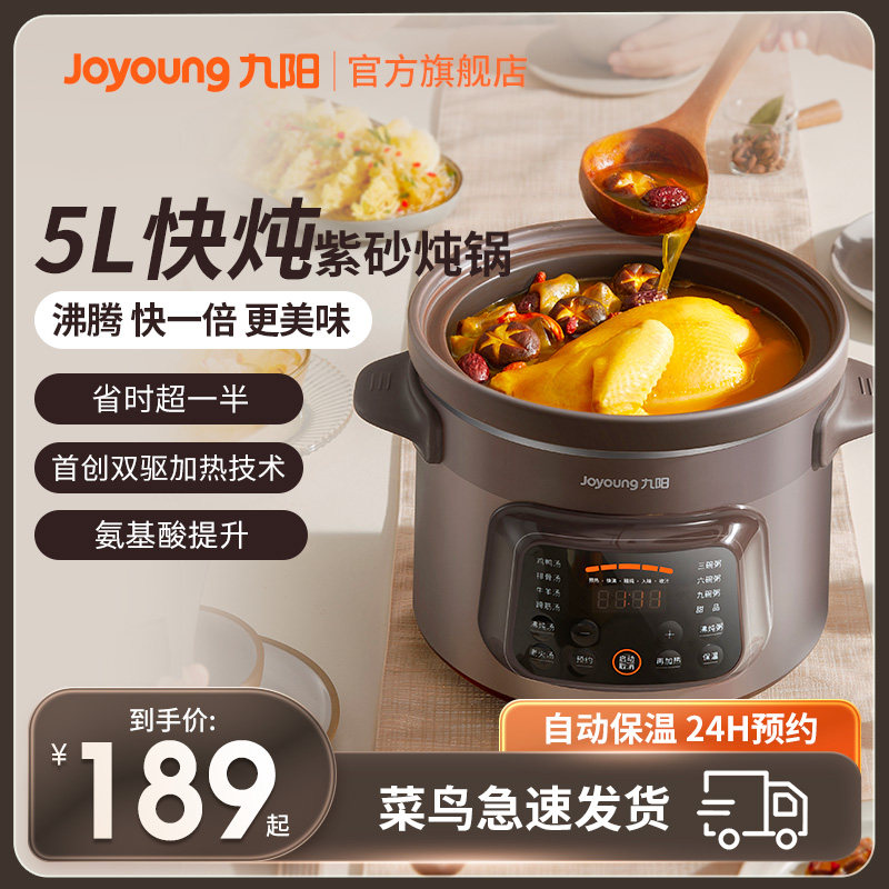 券 125元销量100九阳电炖锅煲汤锅砂锅家用紫砂插电全自动陶瓷炖汤炖盅煮粥神器