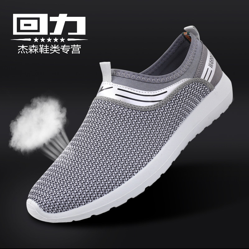 回力爸爸鞋夏季透气男鞋薄款网面鞋一脚蹬休闲老人鞋老北京布鞋男