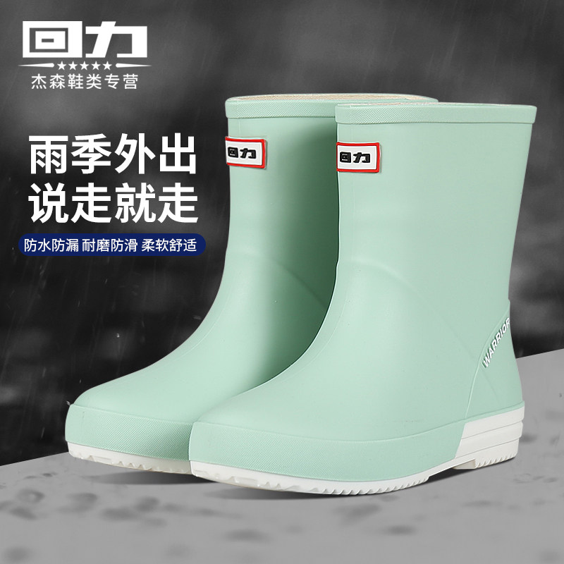 券 10元销量100回力雨鞋女轻便水鞋女新款雨靴日系时尚外穿防水防滑胶鞋成人水靴