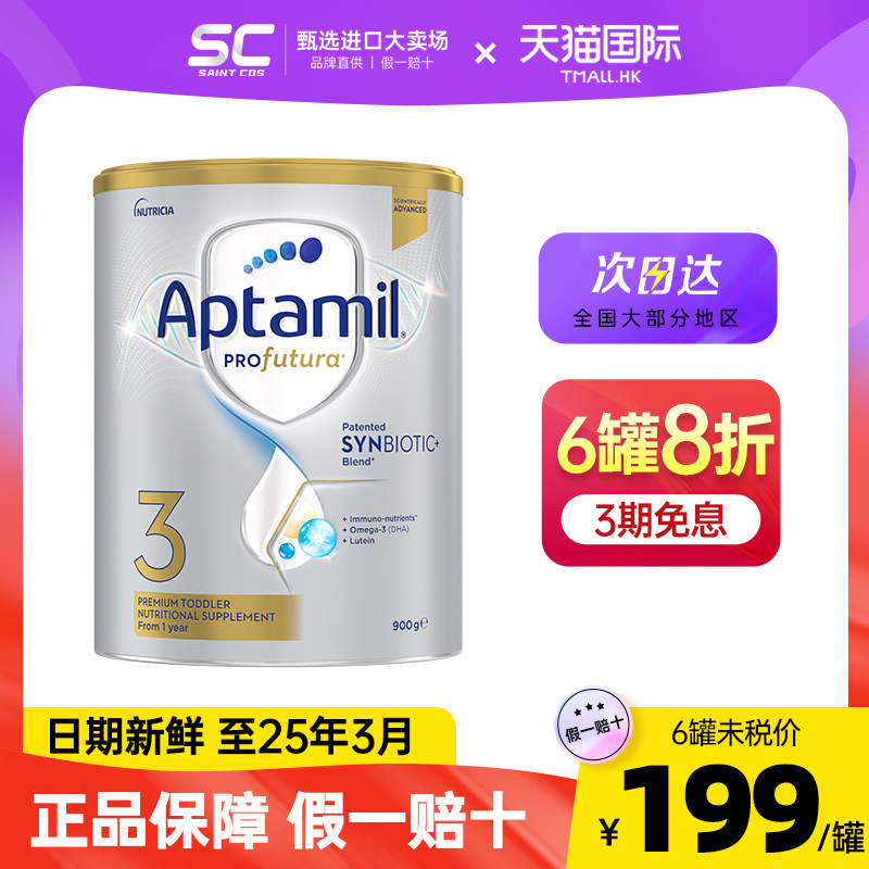 券 8元销量500澳洲爱他美3段白金版铂金爱他三段婴幼儿奶粉新西兰进口900g有4段