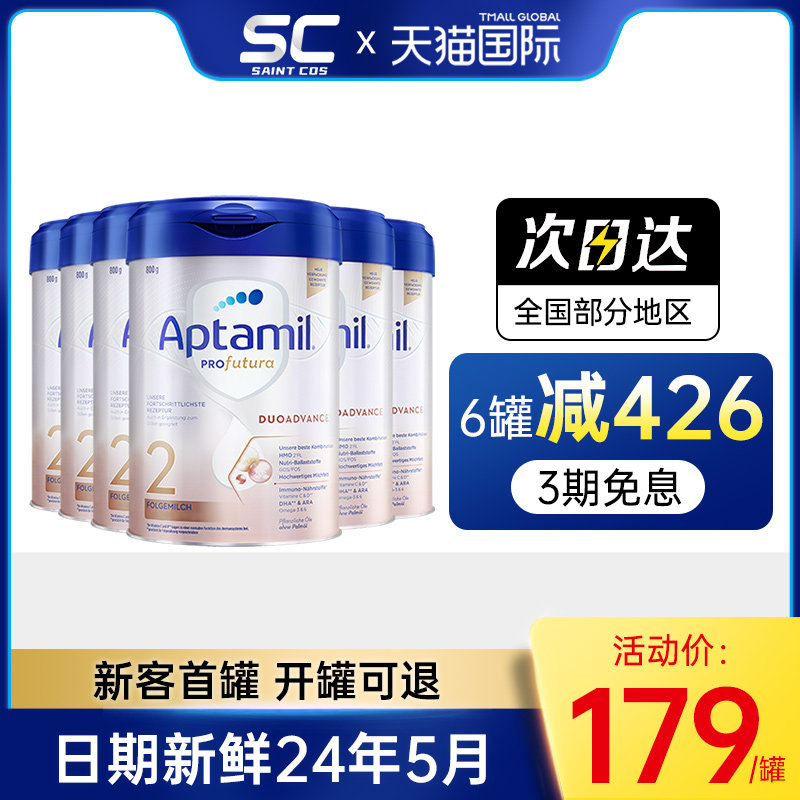 券 10元销量100德国爱他美白金版2段奶粉HMO配方婴儿婴幼儿宝宝牛奶粉二段*6罐装