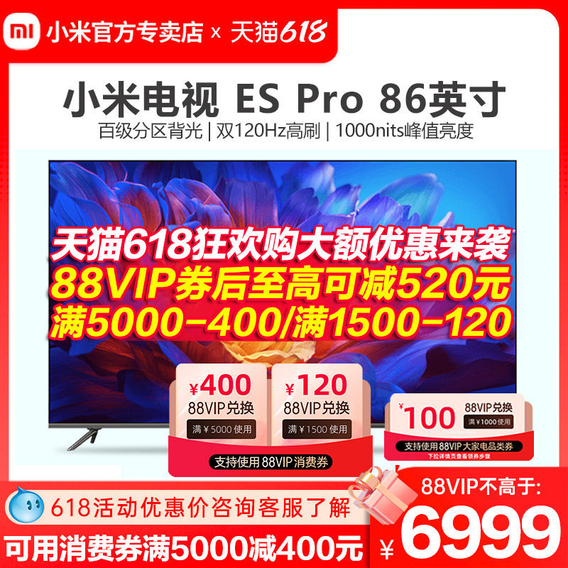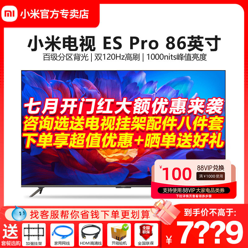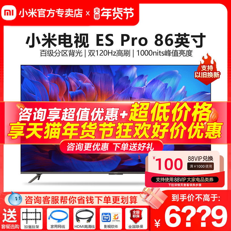 券 2600元销量10小米电视机ESPro86英寸全面屏百级多分区背光双120Hz高刷平板官方