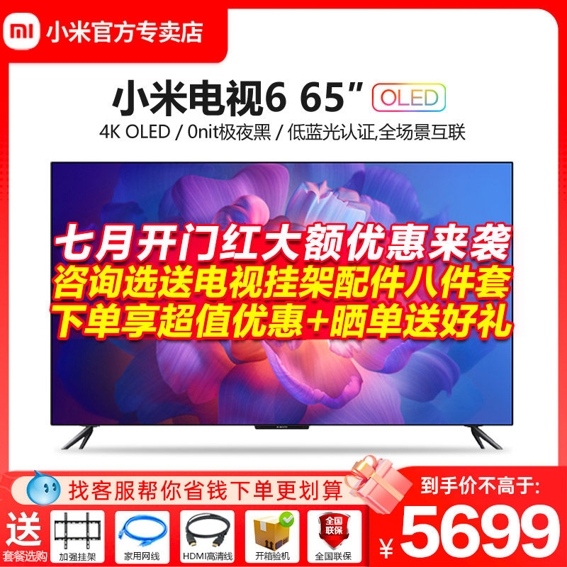 券 638元销量10【现货速发】小米电视6 65英寸OLED自发光MEMC金属全面屏护眼液晶