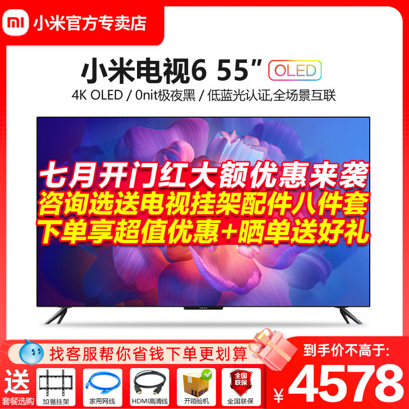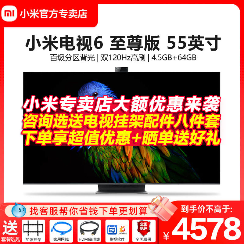 券 478元销量10小米电视55英寸6 55至尊版全面屏4KQLED超高清原色屏液晶高刷平板