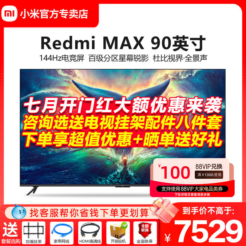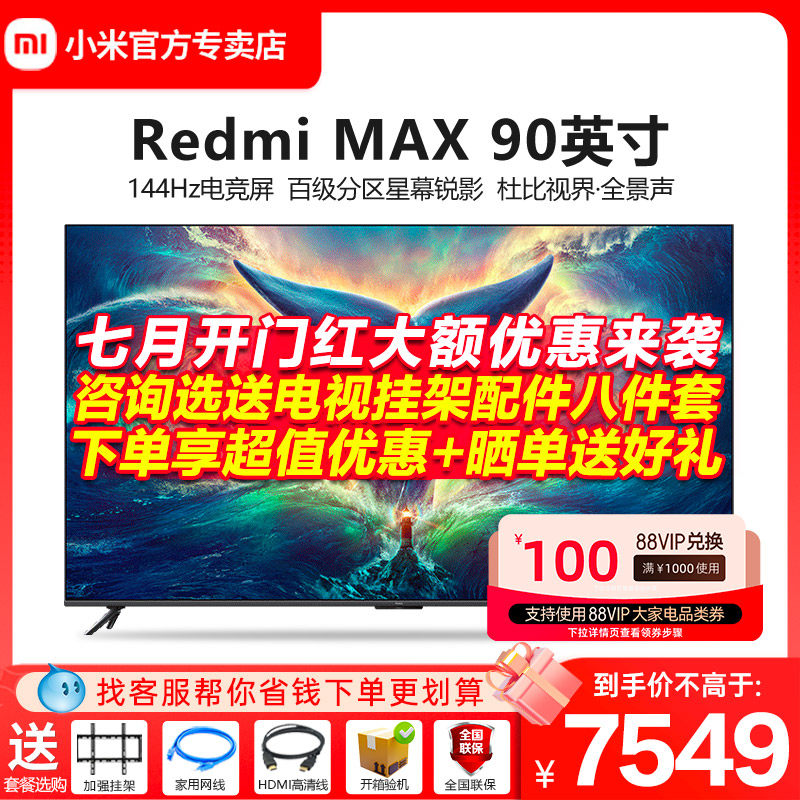 券 1500元销量3小米电视 Redmi MAX 90英寸 超大屏 144Hz高刷 4K超高清巨幕电视