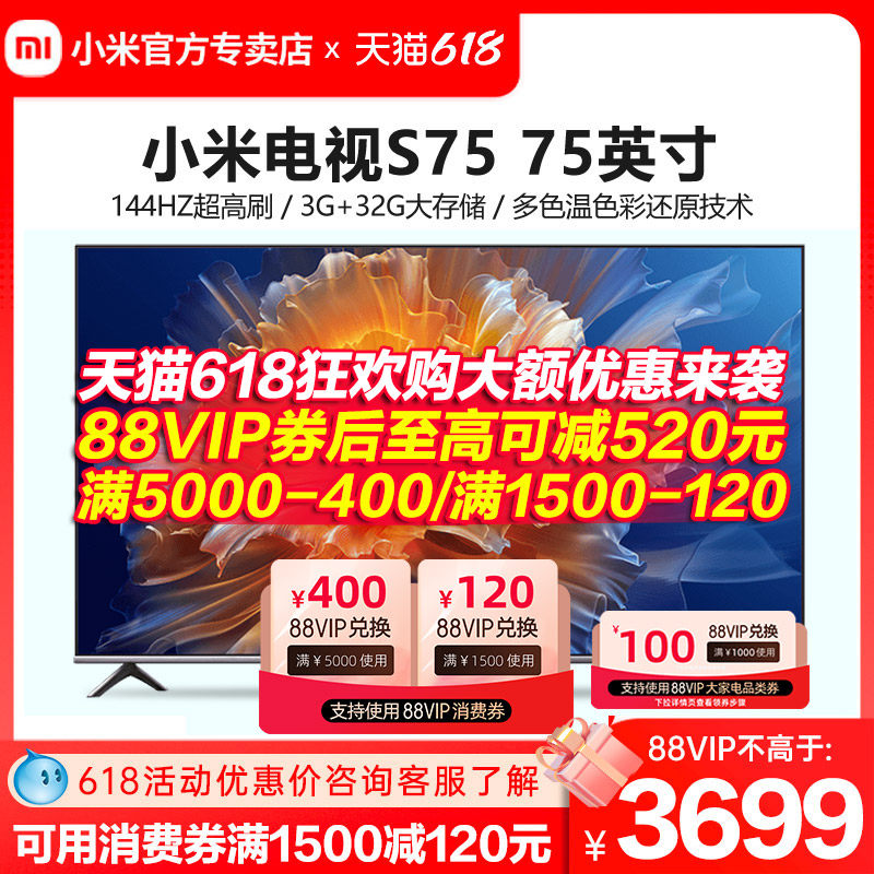 券 1000元销量13小米电视S Pro 75 MiniLED高分区 144Hz超高刷75英寸高清平板电视