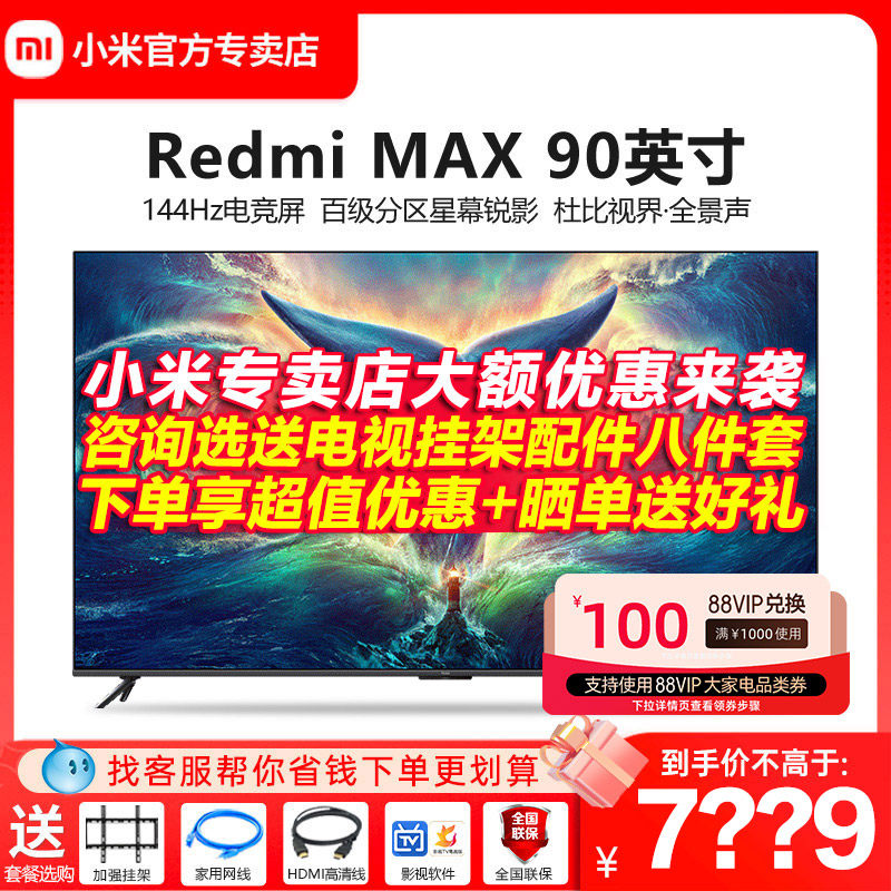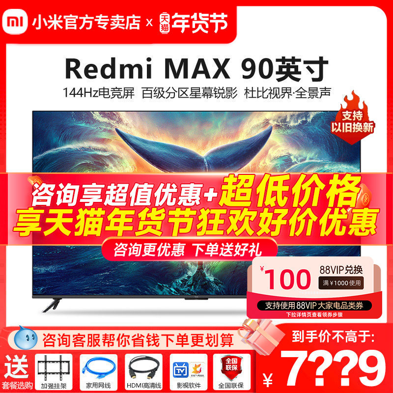 券 1100元销量100小米电视 Redmi MAX 90英寸 超大屏 144Hz高刷 4K超高清巨幕电视