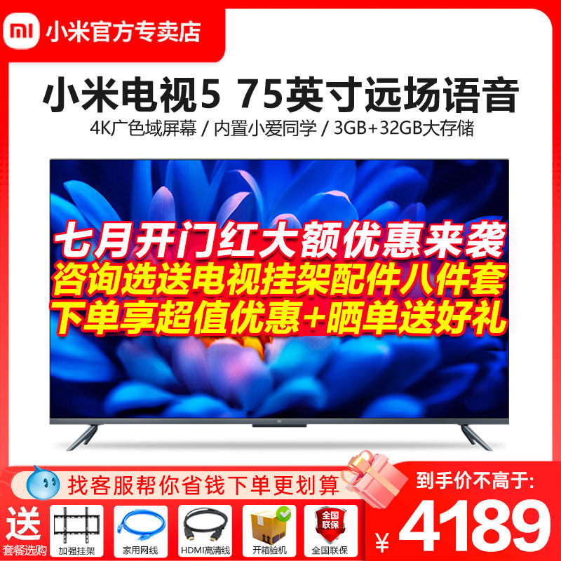 券 649元销量51小米电视5 75英寸4k超高清金属全面屏远场语音智能网络液晶家用70