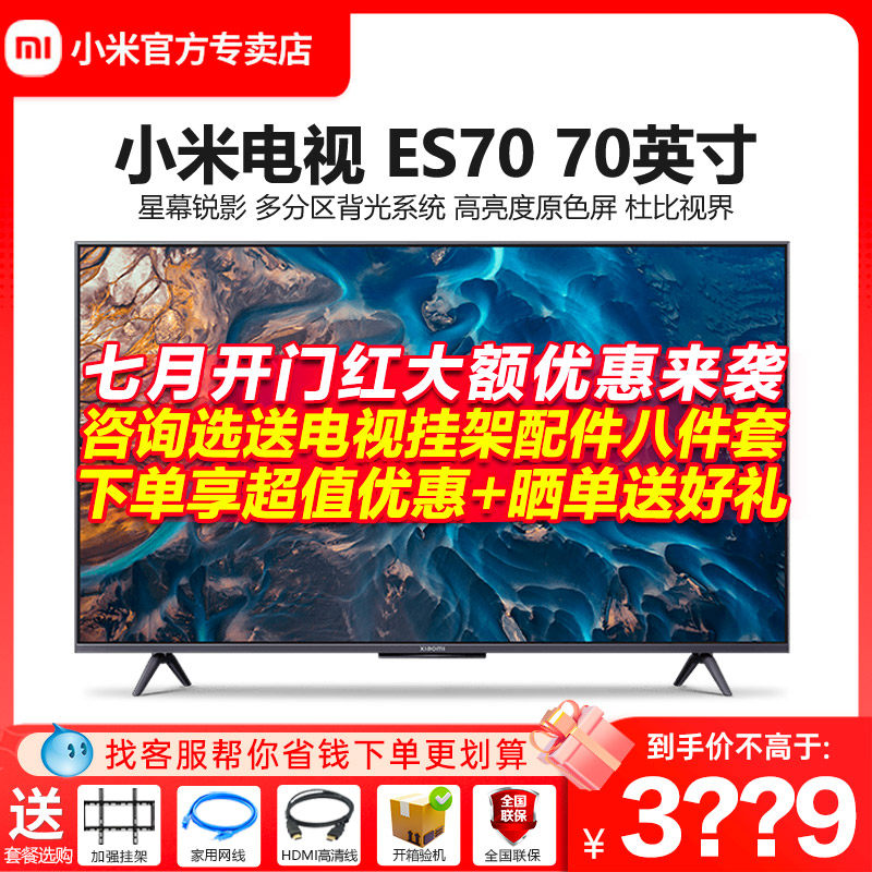 券 666元销量7小米电视机ES70英寸新款4K超高清全面屏智能网络液晶家用75寸电视