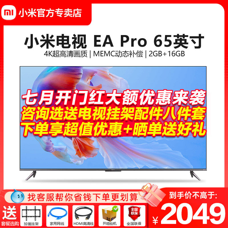 券 450元销量32小米电视EAPro 65英寸4K超高清金属全面屏语音智能平板EA65英寸