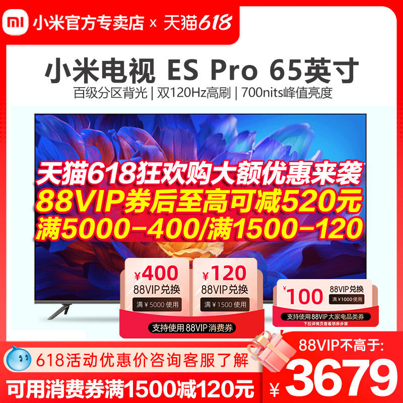 券 620元销量100小米电视机ES Pro 65英寸4K超高清金属全面屏双120Hz高刷客厅65寸