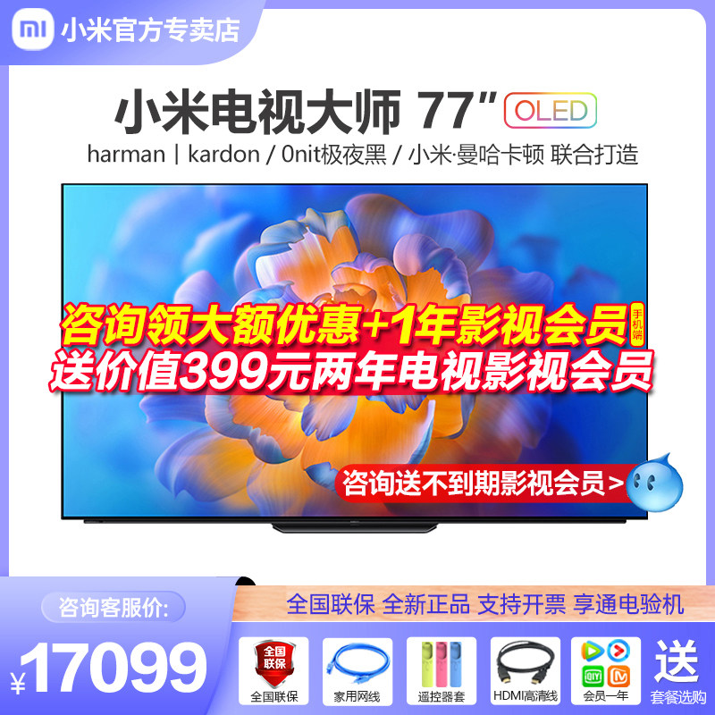 券 920元销量13新品旗舰小米电视大师77英寸OLED自发光哈曼卡顿双120Hz网络液晶