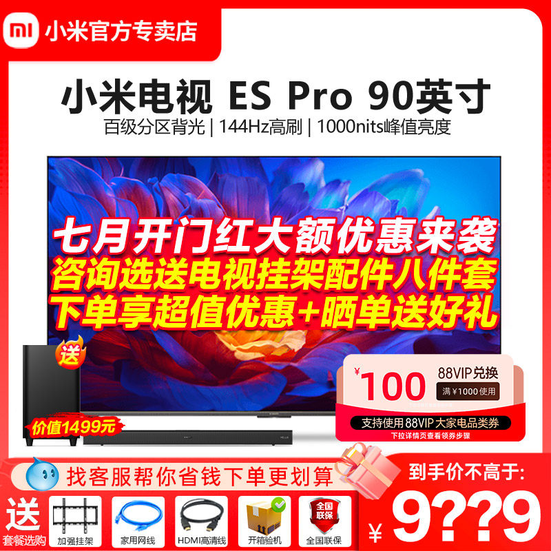 券 1450元销量66小米电视ES Pro 90英寸全面屏百级多分区背光双144Hz高刷平板电视