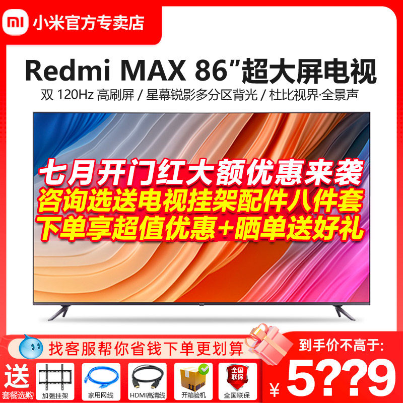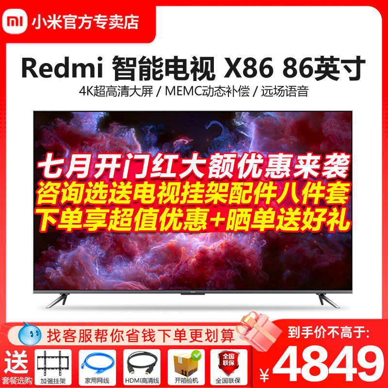 券 468元销量10小米电视Redmi X86吋4K超高清智能网络超大全面屏MAX86英寸电视机