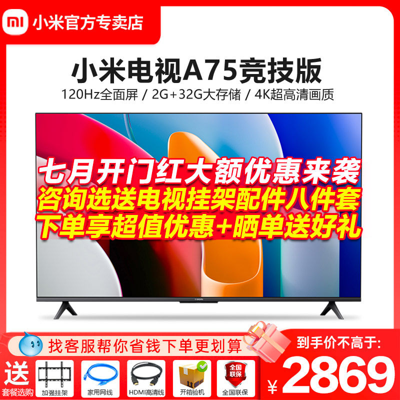 券 550元销量46小米电视A75竞技版 75英寸4K高清全面屏智能网络平板液晶电视机