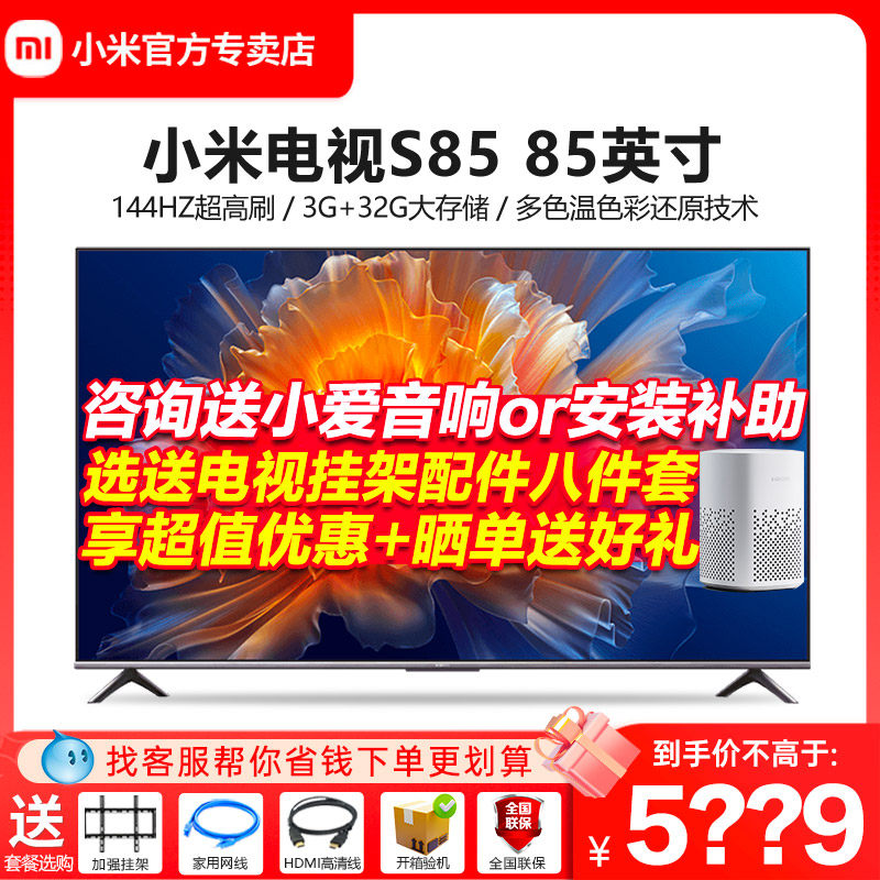 券 1000元销量13小米电视S85英寸4K 144Hz超高刷全面屏声控超高清平板电视NFC遥控