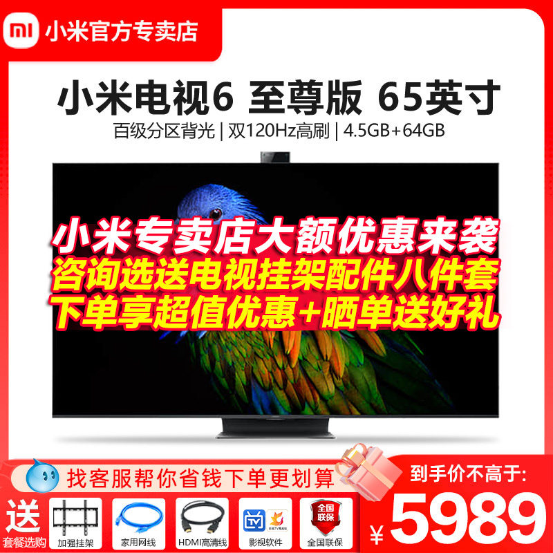 券 798元销量100小米电视65英寸6 65至尊版全面屏4KQLED超高清原色屏高刷高端液晶