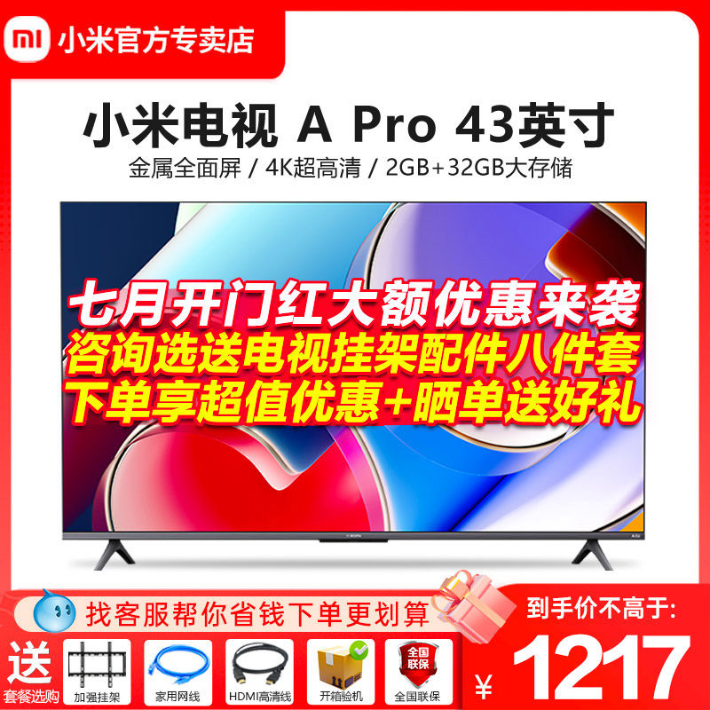券 405元销量10小米电视A Pro43英寸4K高清全面屏智能网络平板液晶电视机