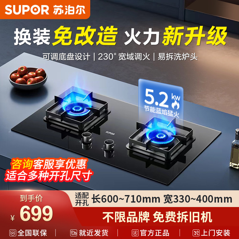 券 200元销量50苏泊尔MB17燃气灶煤气灶双灶家用嵌入式台式天然气液化气猛火灶台