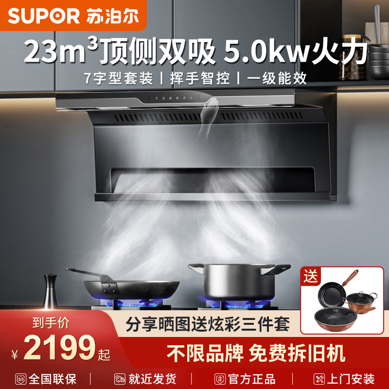 券 2000元销量1苏泊尔ME17超薄烟灶套装燃煤气双灶家用厨房7字型顶侧油烟机灶具