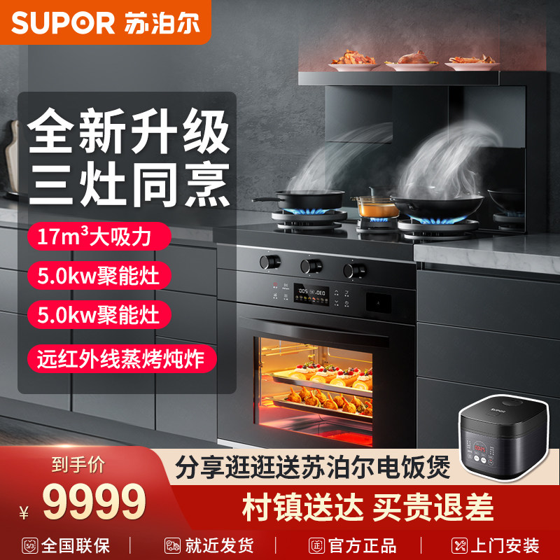 券 3000元销量3苏泊尔UQ77蒸烤箱独立分体集成灶一体灶家用抽油烟机燃气灶环保灶