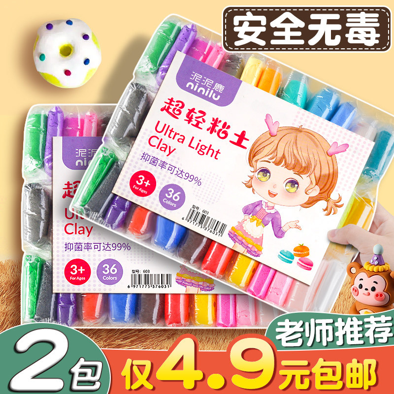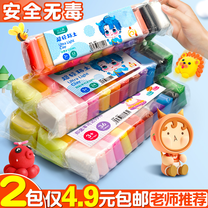 券 1元销量3000超轻粘土儿童无毒安全彩泥橡皮泥小学生专用无味36色12色24色幼儿园宝宝diy手工制作玩具套装黏土太空橡胶泥
