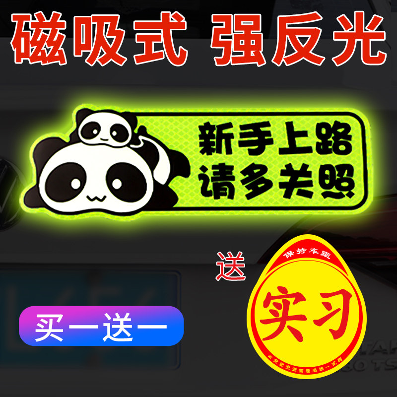 券 3元销量9000新手上路实习期磁性车贴创意女司机磁吸反光搞笑汽车贴纸磁贴标志
