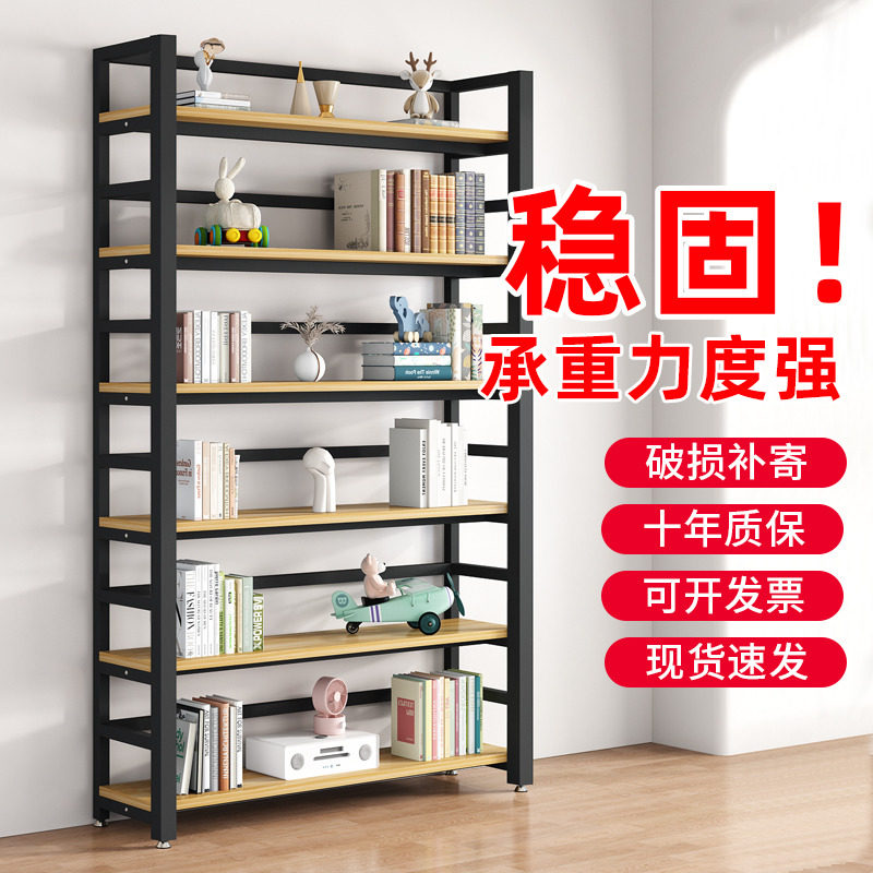 券 100元销量100书架简约落地钢木多层客厅简易储物架家用卧室收纳铁艺书柜置物架