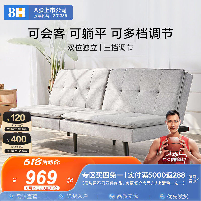 券 1000元销量508HSLEEP北欧双人沙发床小户型可折叠收纳坐卧多功能客厅布艺沙发