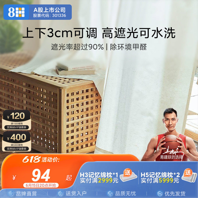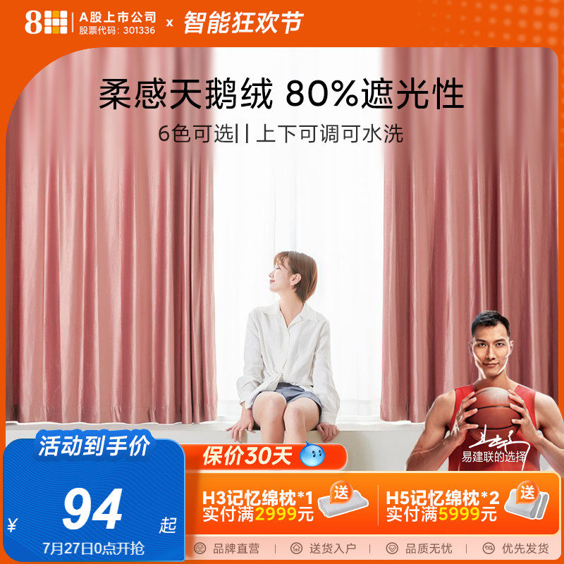 券 20元销量248HSLEEP简约99%遮光除甲醛卧室窗帘纯色客厅隔热窗纱免打孔安装