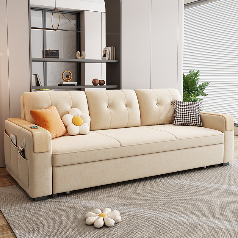 券 100元销量7轻奢奶油系小户型沙发床坐卧多功能客厅折叠两用储物科技布沙发床