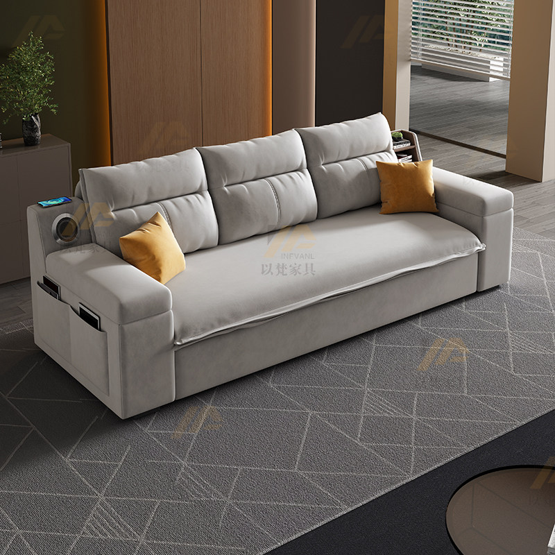 券 100元销量3小户型折叠两用沙发床客厅多功能蓝牙音响抽拉储物双三人直排沙发