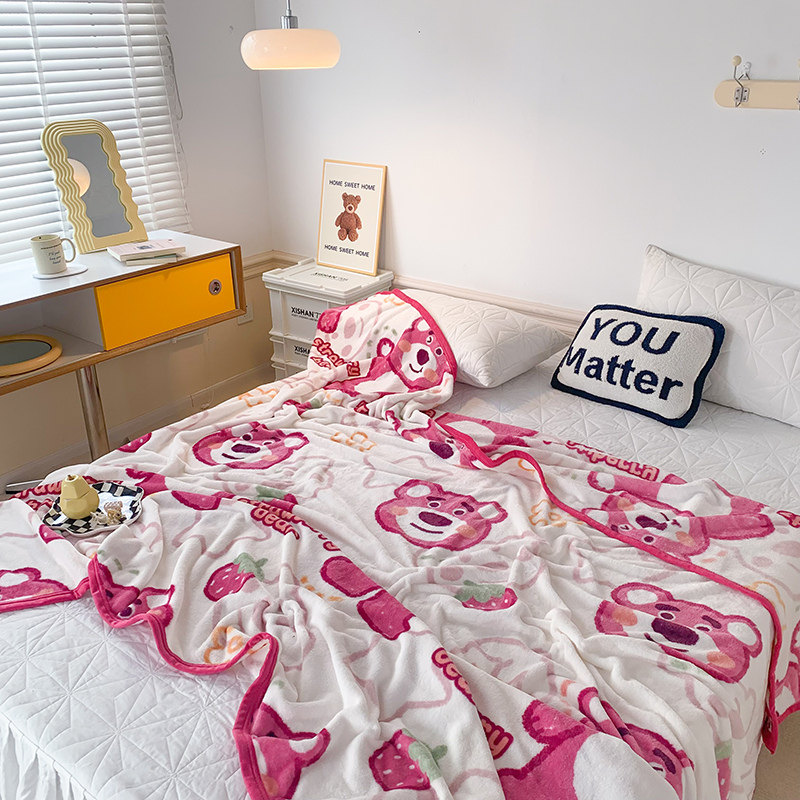 券 10元销量35迪士尼草莓熊可爱休闲牛奶绒毛毯午睡毯空调毯可爱沙发装饰薄毯子