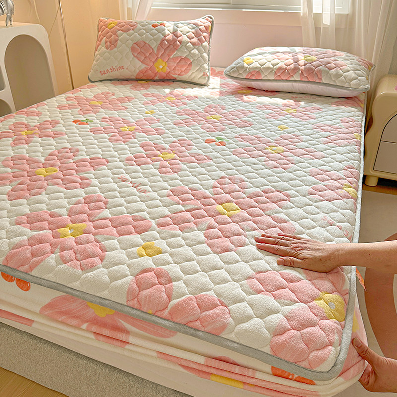 券 8元销量10牛奶绒床笠单件夹棉加绒床笠罩床垫保护罩秋冬季珊瑚绒床单三件套
