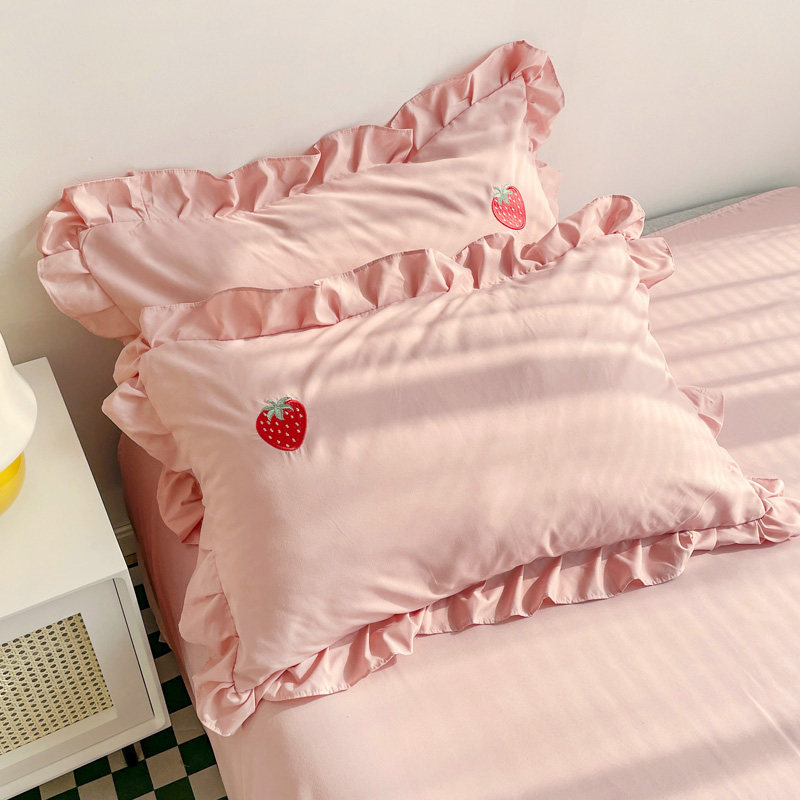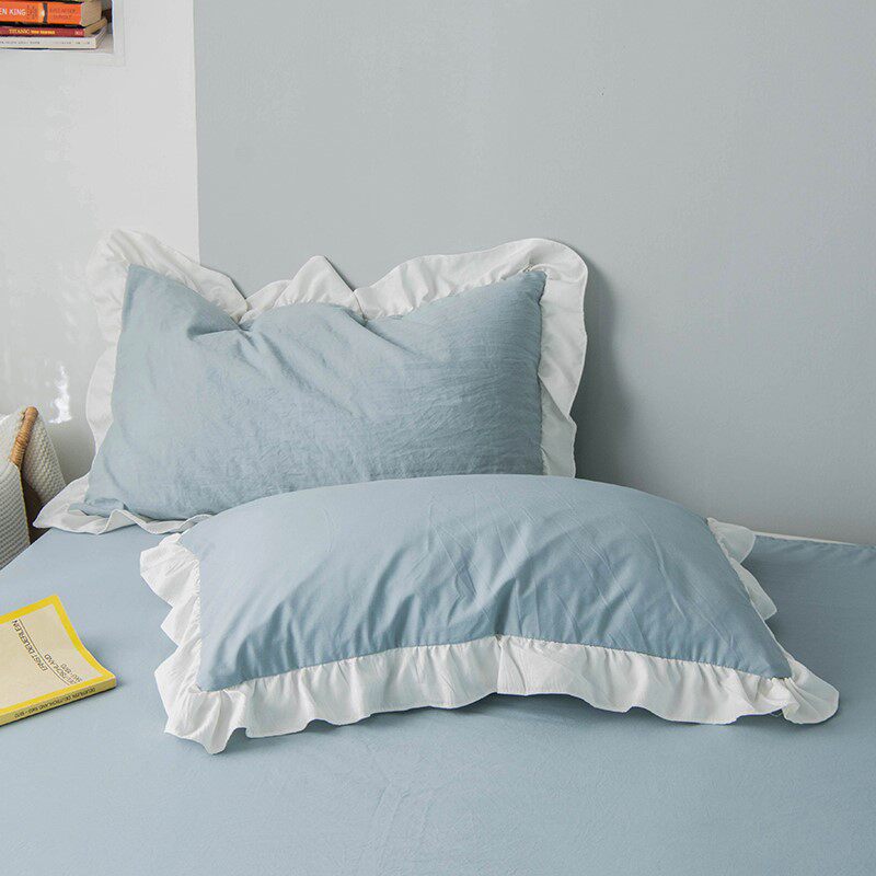 券 10元销量100ins风荷叶边少女纯色水洗棉枕套一对装夏季公主枕头套枕芯内胆套