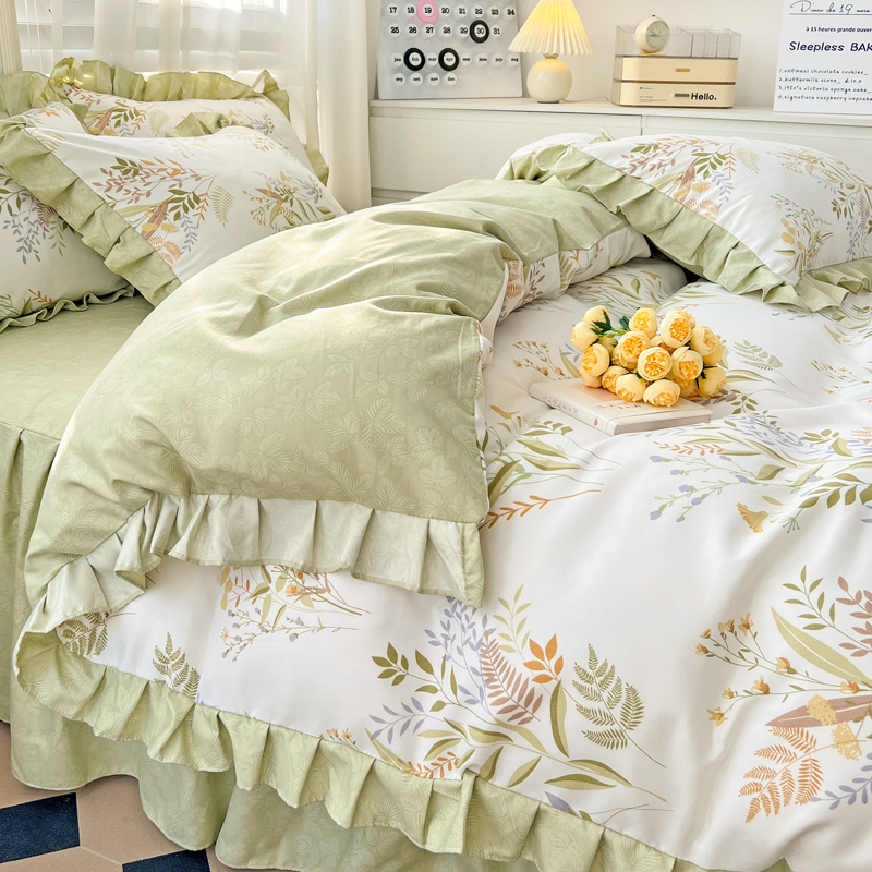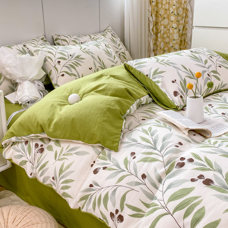券 10元销量0A类双层纱水洗棉麻四件套小清新床品学生宿舍三件套床单被套床笠4
