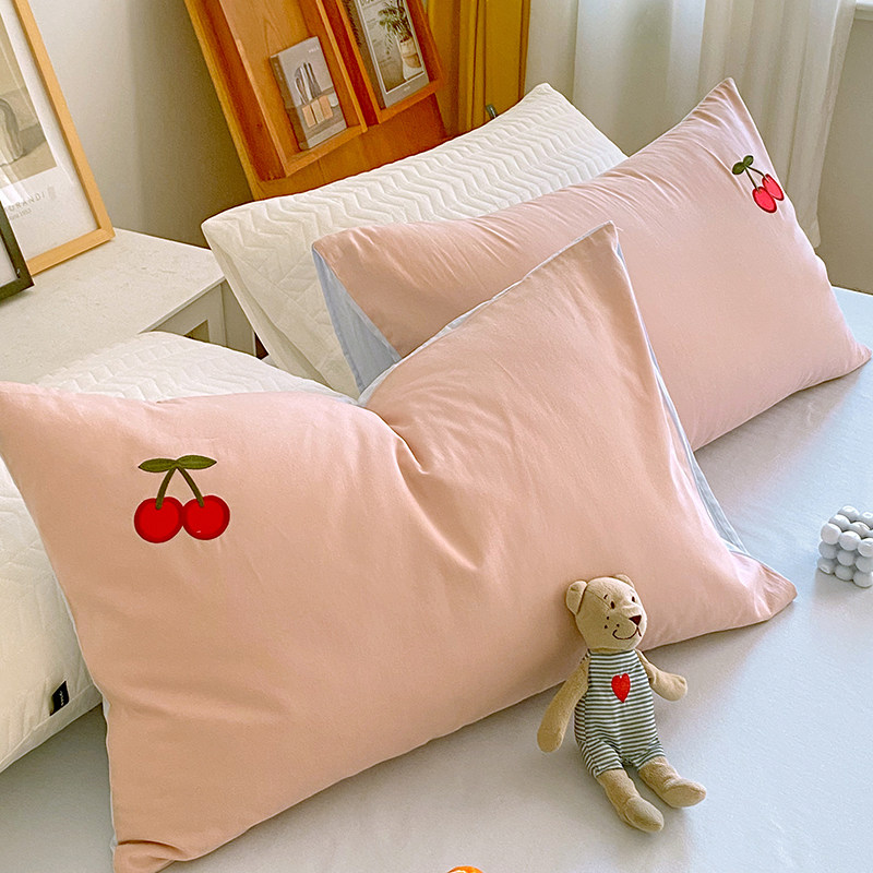 券 10元销量83ins小清新纯色纯棉刺绣简约枕套一对装48x74cm枕芯套单人全棉两只