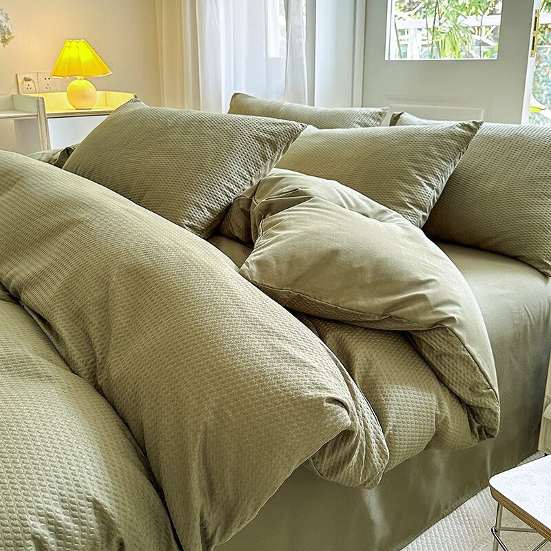 券 10元销量100高级感华夫格水洗棉床上四件套床品宿舍床单被套非全棉纯棉三件套