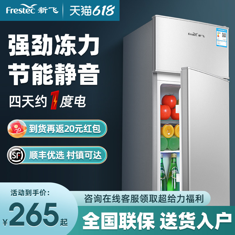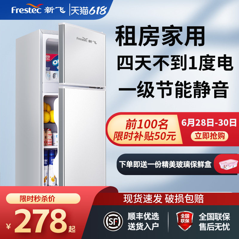 券 30元销量10新飞小冰箱家用双门静音小型冰箱一级能效宿舍租房冷藏冷冻电冰箱