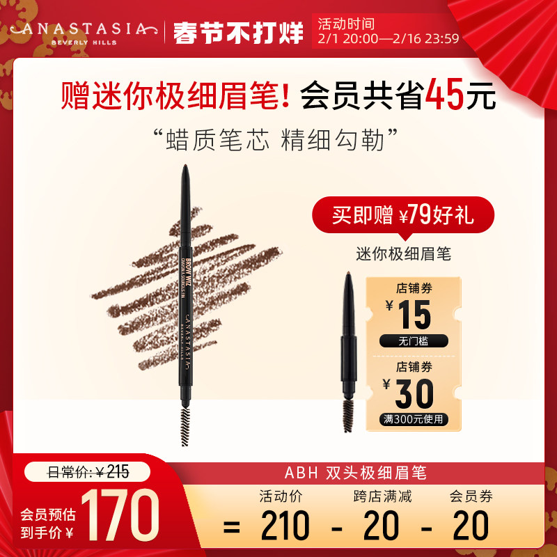 券 30元销量43Anastasia美国ABH双头极细眉笔不脱色易上色初学者自然立体2支装