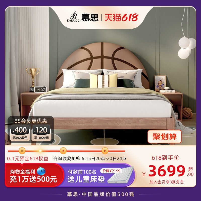 券 100元销量100慕思官方简约现代篮球风格儿童靠包软床男孩床童趣风格实木床