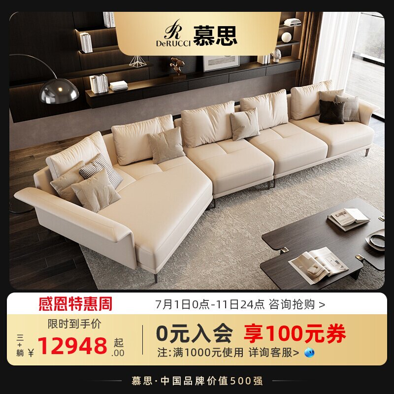 券 100元销量10慕思旗下艾慕意式轻奢真皮沙发客厅现代简约转角头层牛皮沙发家具