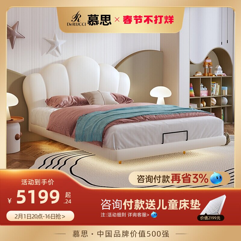 券 100元销量300慕思儿童床悬浮床女孩公主床卧室软包硅胶皮床儿童房云朵床男孩
