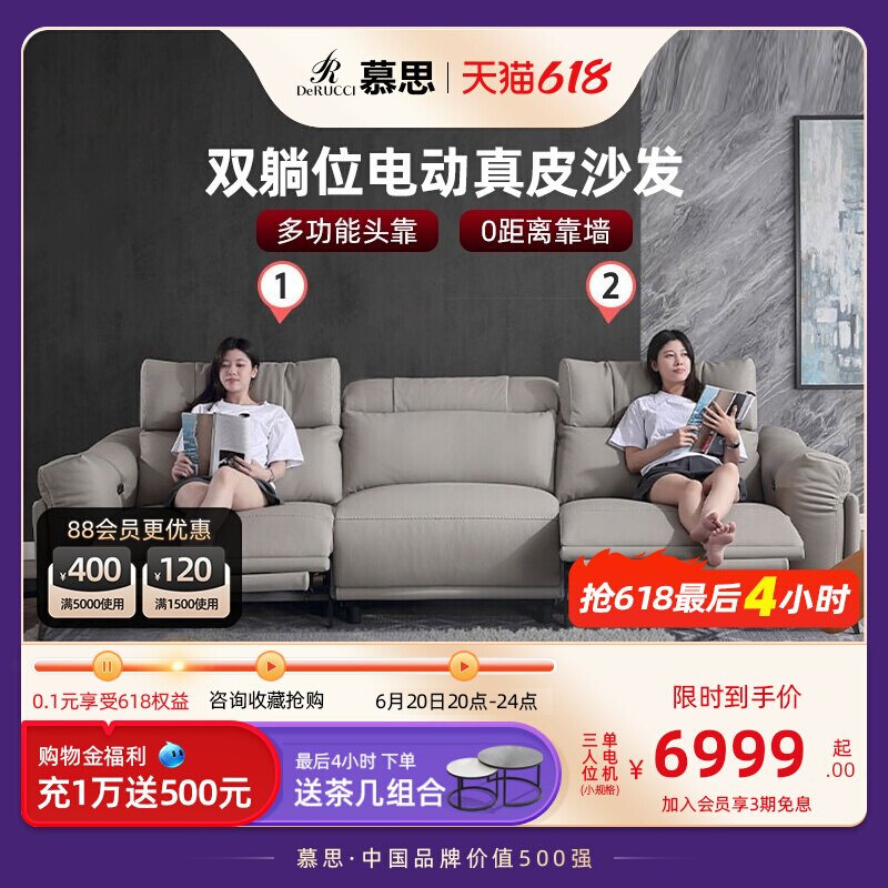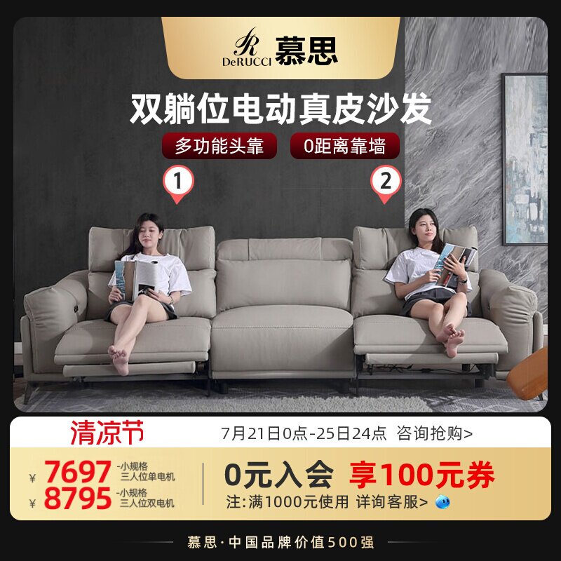 券 500元销量15慕思艾慕电动功能真皮沙发客厅现代轻奢头层牛皮沙发小户型家具