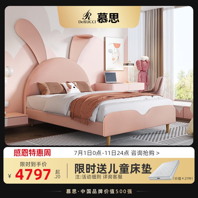 券 100元销量50慕思官方旗舰店儿童床硅胶皮艺床女孩公主床兔子耳朵童趣床027