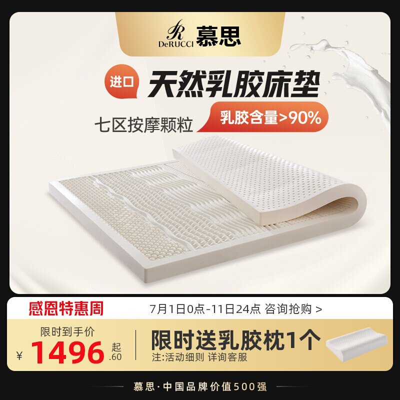 券 100元销量600慕思官方十大名牌天然乳胶床垫席梦思橡胶泰国进口榻榻米卷包薄垫