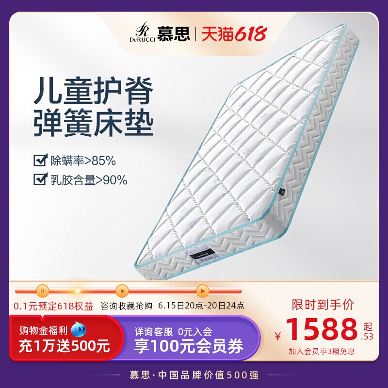 券 100元销量100慕思官方旗舰店青少年进口儿童床垫十大慕斯名牌席梦思护脊垫1.5m