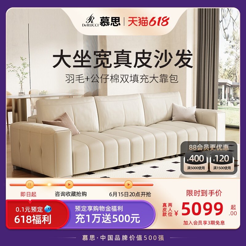 券 100元销量10慕思旗下艾慕真皮沙发钢琴键豆腐块小户型客厅轻奢现代直排沙发