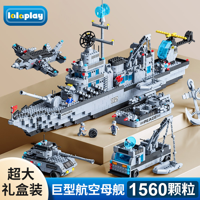 券 10元销量500大型航空母舰中国积木拼装玩具男孩益智力动脑军舰儿童礼物6-12岁